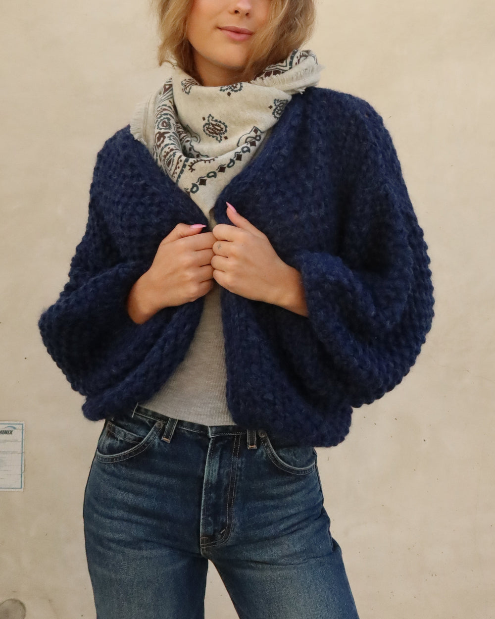 The Bomber Cardigan, in a super soft alpaca, with one of your favorite knitting stitches ever, the pearl pattern.