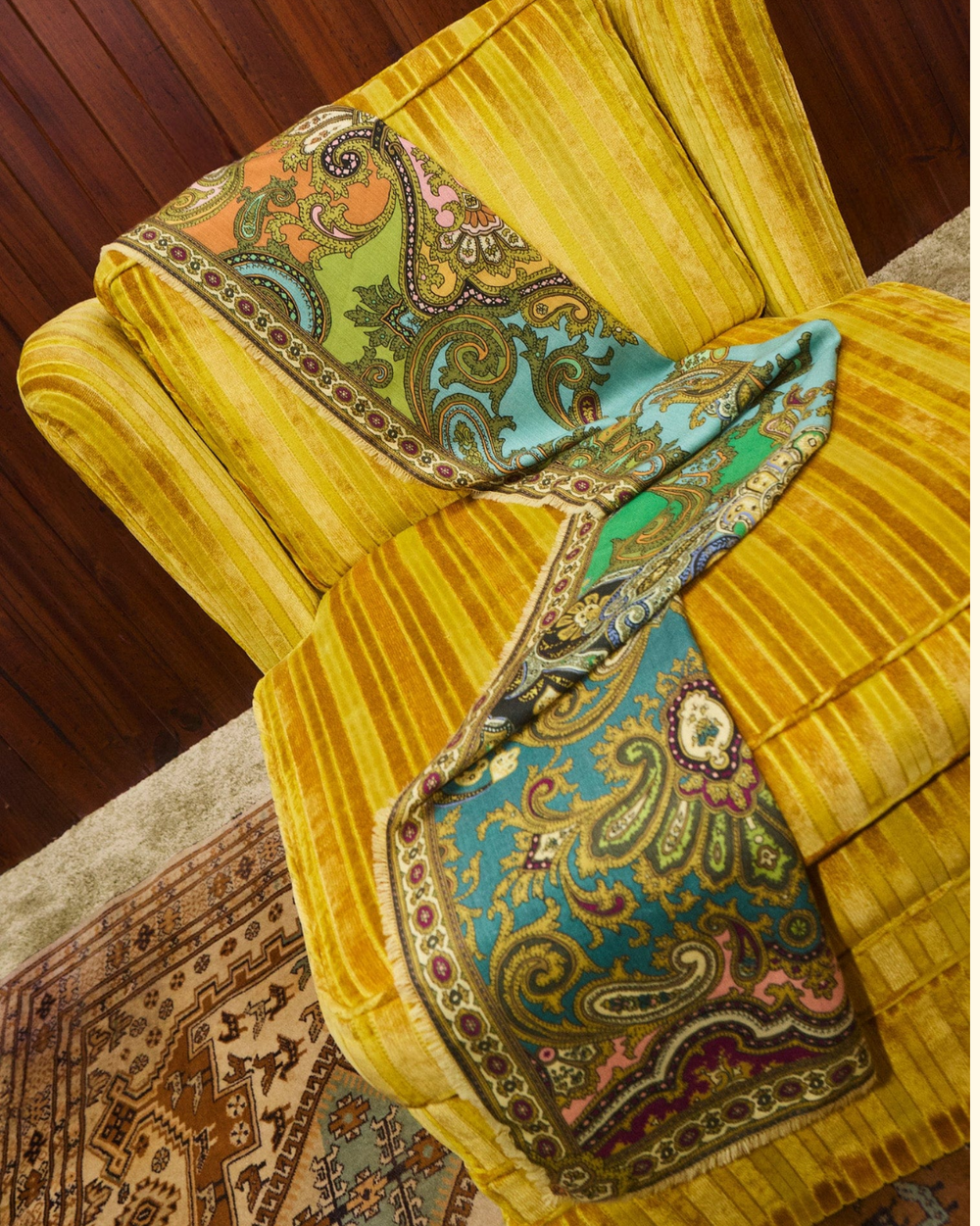 Clemenza paisley printed warm handle scarf with eyelash fringing