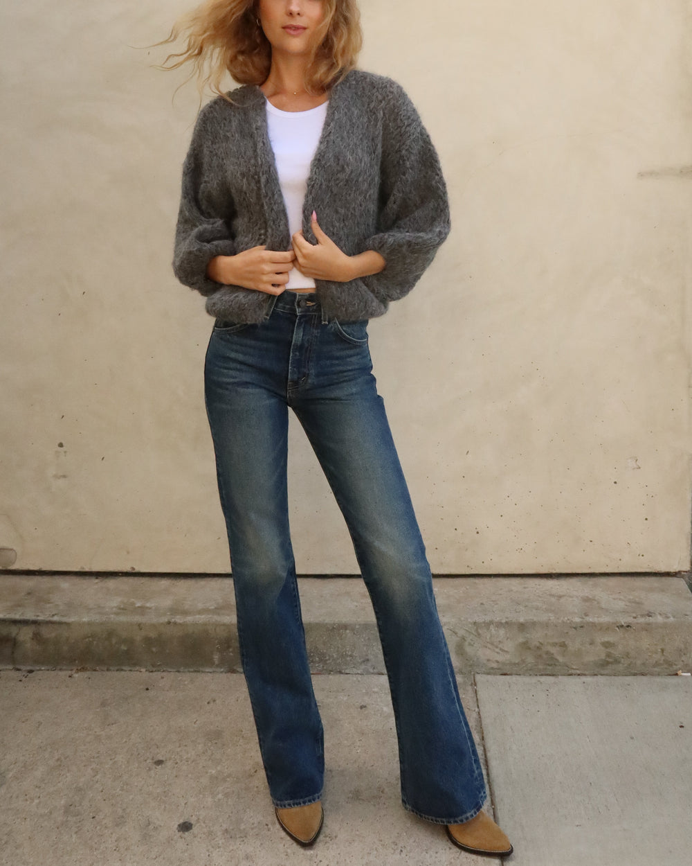 The favorite bomber cardigan, weaved from shaggy alpaca
