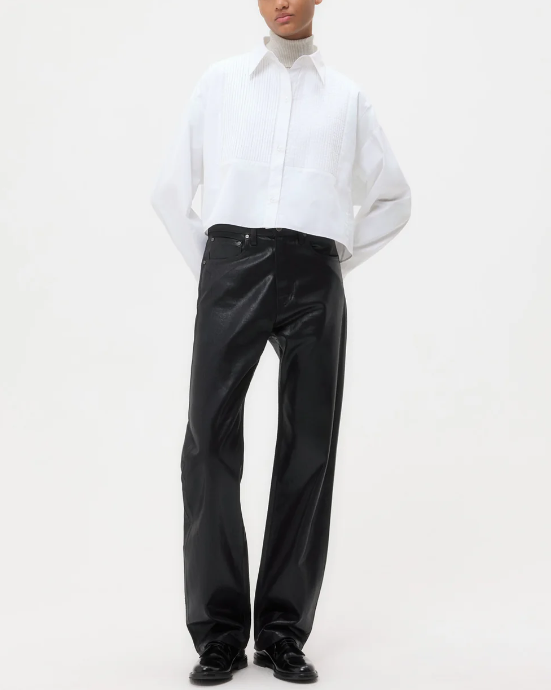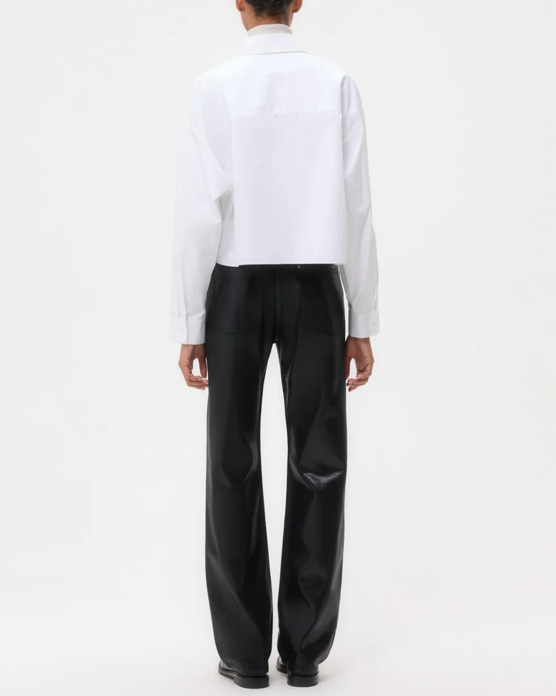 Cropped long-sleeve button-down in cotton poplin. The Soon To Be Ex features a boxy silhouette with a tuxedo-style bib. Complete with an exposed button-up placket, chest patch pocket, and single-pick up button cuff